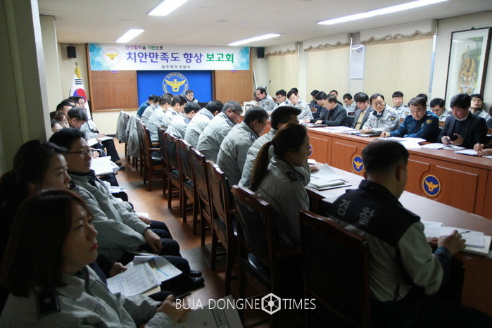 1월 11일 10:00시 서장, 각 과장, 계장 및 지구대장 등 60여 명이 참석한 가운데 주민들의 치안만족도 향상을 위한 보고회를 개최하였다. 이날 회의에서는 4대악 체감 안전도 향상을 비롯하여 학생들의 등·하굣길 교통안전 확보 방안 등을 논의하였다.
