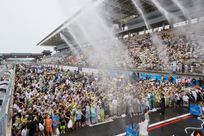 [사진설명] 17일(일) 영암에서 ‘아시아 모터스포츠 카니발’에서 진행된 워터쇼에서 서킷에 모인 관중들이 환호하고 있다.
