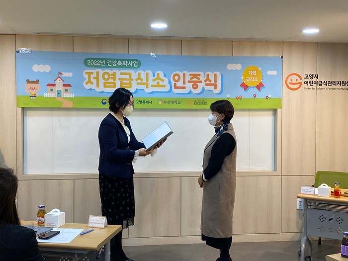 [부자동네타임즈 김인수기자] 고양특례시(시장 이동환) 어린이·사회복지급식관리지원센터에서 2022년 저염 급식소 인증식을 진행했다. 센터는 현재 고양시 내 총 343개의 어린이 급식소가 저염 급식 인증을 받아 유지·관리되고 있다고 18일 밝혔다.