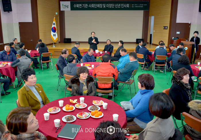 [부자동네타임즈 손권일 기자]담양 수북면은 최근 수북면복지회관에서 관내 기관과 단체, 이장 및 부녀회장, 주민 등 70여명이 참석한 가운데 면민들의 생활 속 불편과 건의사항을 청취하는 ‘신년 인사회’를 가졌다고 전했다.
