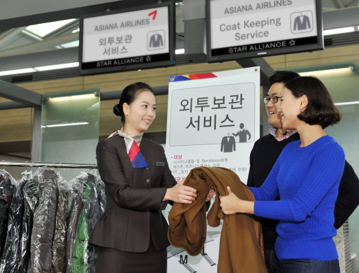 아시아나 고객도 아시아나항공 탑승권을 지참, 인천국제공항 여객터미널 지하 1층에 위치한 ‘클린업에어'(Clean-up Air/24시간 운영)에서 접수를 마친 후 외투를 맡기면 된다.