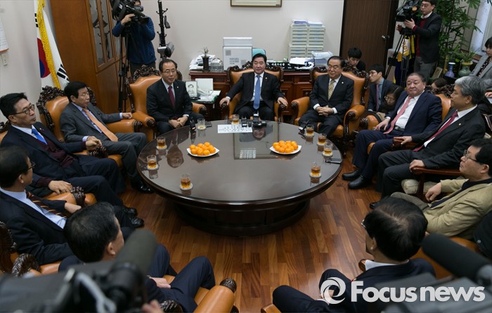 (서울=포커스뉴스) 11일 오전 서울 여의도 국회 이석현 부의장실에서 열린 당내 현안 관련 새정치민주연합 중진 의원 간담회에 참석한 의원들이 논의를 하고 있다. 이날 간담회에는 이석현 부의장을 비롯해 강창일, 김동철, 김성곤, 김춘진, 문희상, 설훈, 양승조, 오제세, 유인태, 원혜영, 주승용 의원 등이 참석했다.