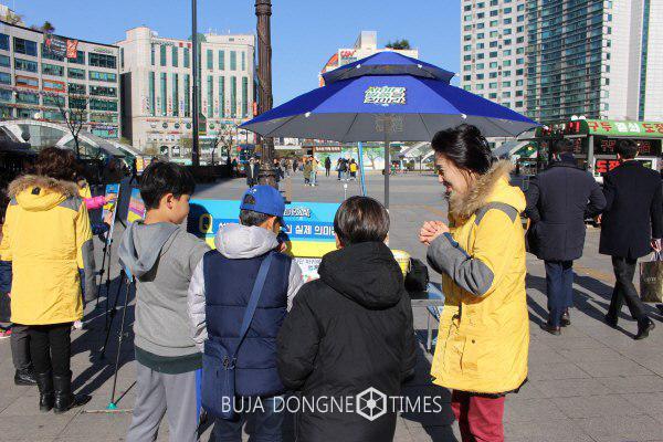 이날 3호선 화정역 광장을 지나던 시민들은 영하 추위 가운데서도 시몬지파 홍보단서 진행하는 교리비교 체험 부스에 발걸음을 멈춰 홍보단원들에게 신천지예수교회에서 진행하는 전단지 및 교리비교 콘텐츠에 대해 질문했다.
