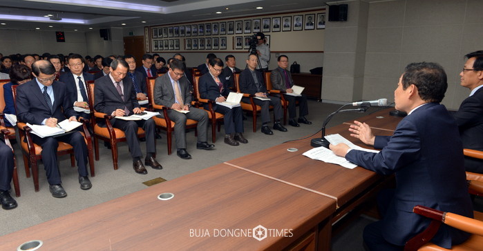 | △윤장현 광주시장은 헌법재판소가 탄핵을 선고함에 따라 오후 1시 4급 이상 광주시 공직자가 참여한 긴급 간부회의를 열고 "오늘 이후로 광주광역시 공직자들도 새로운 대한민국을 세워간다는 각오로 함께 일합시다."고 당부하고 있다 |