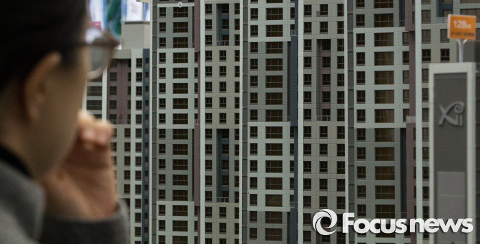 | △ 지난달 2일 서울 강남구 GS자이갤러리에 마련된 '성동 서울숲리버뷰자이' 견본주택을 방문객이 살펴보고 있다. <사진제공=포커스뉴스> |