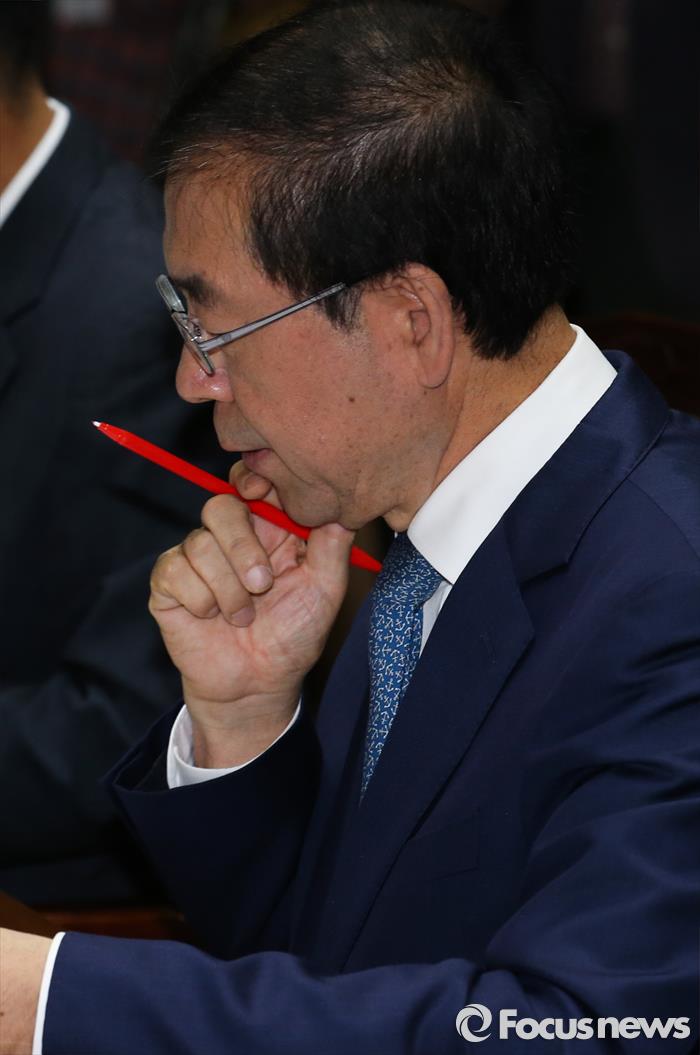 | △ 6일 오전 서울시에 대한 국정감사에 참석한 박원순 서울시장이 생각에 잠겨있다. 오장환 기자 ohzzang@focus.kr |