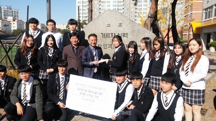 | △장덕고등학교 학생 민주·인권·평화동아리 '지역사회탐구동아리'가 '근로정신대 할머님을 위한 행사'로 바자회와 강연회를 개최하고 발생한 수익금 84만원을 '근로정신대 할머니와 함께 하는 시민모임'에 기부했다 |