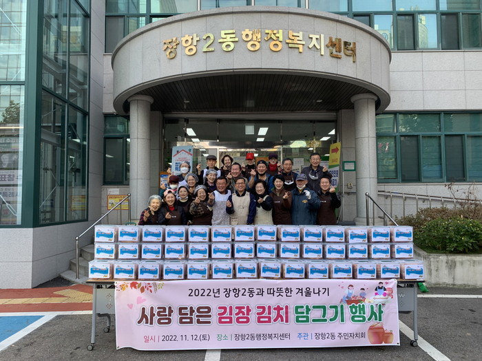 [부자동네타임즈 김인수기자] 고양특례시 일산동구 장항2동 주민자치회(회장 이상봉)는 지난 11월 12일 장항2동 행정복지센터 앞에서‘사랑담은 김장 김치 담그기 행사’를 열어 어려운 이웃들을 위한 따뜻한 나눔을 실천했다.