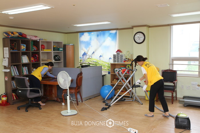 북부경찰서 직원들은 복지관 내·외부 청소 및 화단정리 등 봉사활동을 실시하고 경찰서 전 직원이 십시일반 모금한 기금으로 구입한 쌀, 라면, 화장지 등 생필품을 전달하였다.