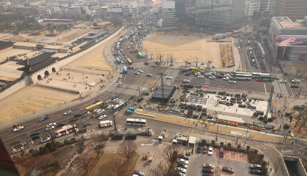 광화문광장에 설치되는 BTS 컴백공연 무대