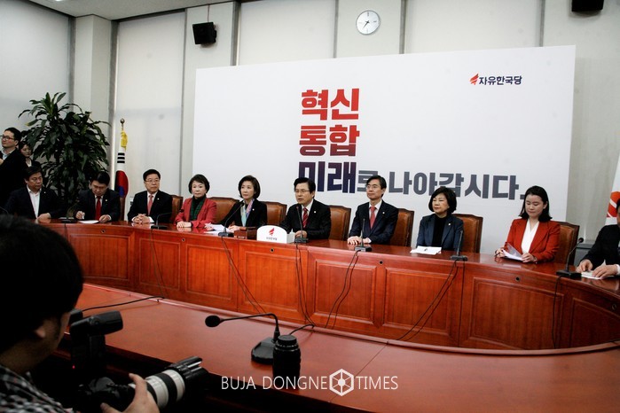 이제 비상대책위원회 체제가 마쳐지고 오늘부터 자유한국당의 최고위원회가 결성이 됐다. 앞으로 당 대표님을 중심으로 해서 알맹이 있는, 실력을 갖춘, 대안이 있는 정책 정당이 되도록 하고, 품위를 갖추는 그런 도덕 정당 그리고 절대로 당내에서 자기 정치하지 않는, 개인 정치 과하게 하지 않는 그런 통합정당이 되도록 하는데 열과 힘을 다하도록 하겠다. 감사하다,
