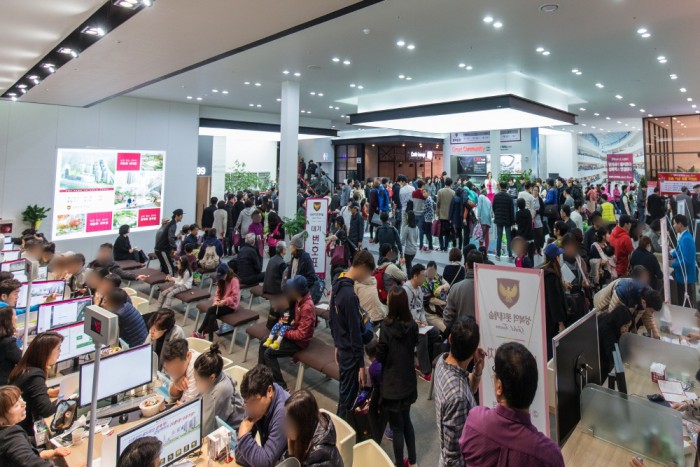 | △ 롯데건설이 경기도 용인에 분양한 성복역 롯데캐슬 골드타운 모델하우스 내부에 분비는 모습. <사진제공=롯데건설> |