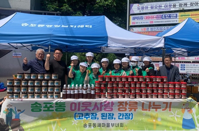 [부자동네타임즈 김인수기자] 고양특례시 송포동 부녀회(회장 이연희)가 지난 1일 송포동 행정복지센터 주차장에서 ‘사랑의 장 나눔’행사를 진행했다.