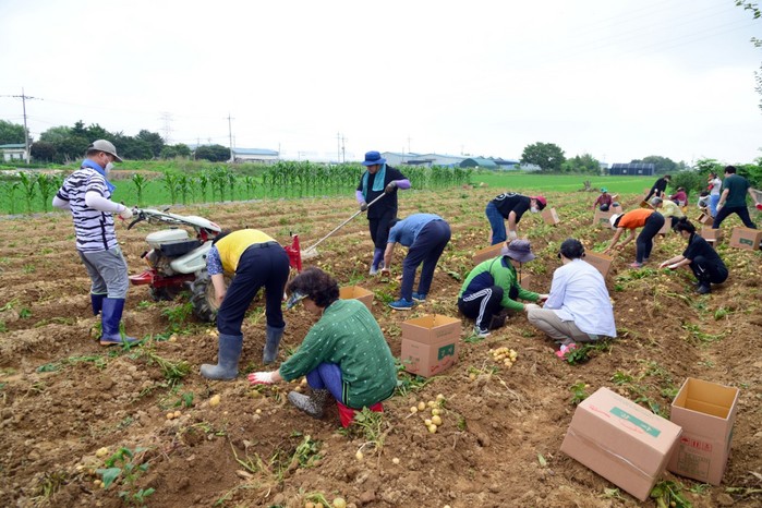이날 수확한 감자들은 경제적 위기로 힘든 시기에 관내 사회적 약자 및 소외계층 100가구에 전달됐다.