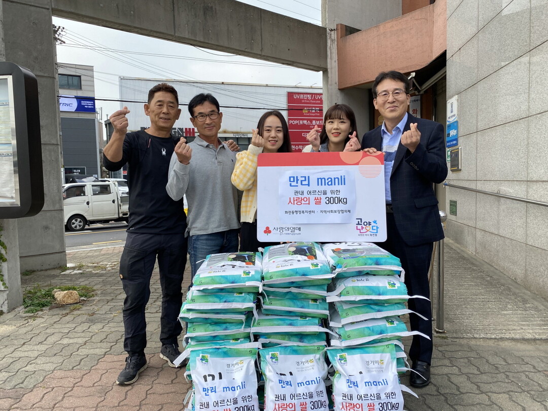 전달된 쌀은 화전동 지역사회보장협의체에서 관내 경로당 16개소에 전달될 예정이다. 쌀은 급격히 쌀쌀해진 날씨와 물가 상승으로 다가올 월동준비에 어려움을 겪는 관내 지역 어르신들께 사랑의 온기를 전할 예정이다.