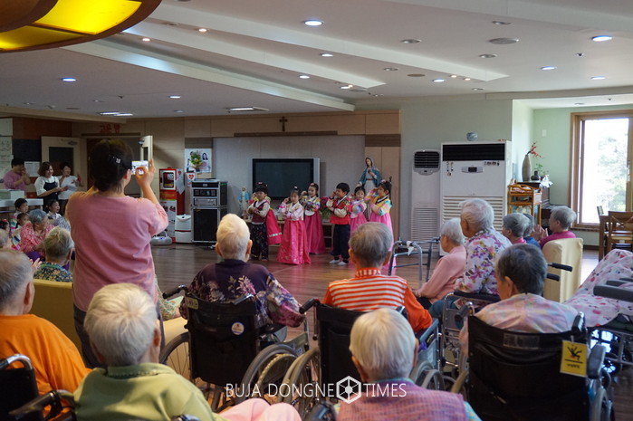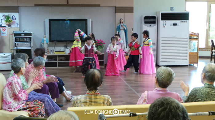 | △또한 인근 요양원을 방문하여 나눔 황동으로 사랑의 편지, 노래와 율동, 악기연주, 할머니 안마해 드리기 등 요양원 가족들과 함께 즐거운 시간을 가졌다 |