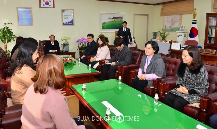 | △장휘국 광주시교육감은 교육감실에서 지난 1월 1일 자로 본청에 전입한 6급이하 직원들과 간담회를 갖고 오찬을 함께 했다 |