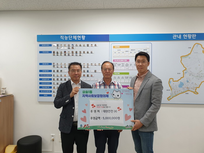 홍길표 삼송1동장은 “삼송1동 어려운 이웃을 위해 후원해 주시는 대원안전㈜에 감사의 말씀드린다. 소중한 후원금이 꼭 필요한 곳에 지원될 수 있도록 하겠다.”라고 밝혔다.