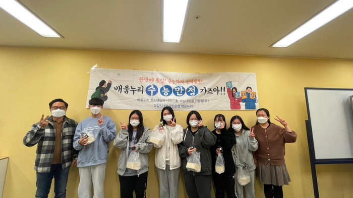 [부자동네타임즈 김인수기자] 고양시가 고양시-KB국민은행 배움누리에서 수능과 취업 등 사회진출을 준비하고 있는 청소년 17명을 위해 서울도시가스 SCG한마음 봉사단(회장 박삼석)과 함께 응원 행사를 지난 27일 진행했다.