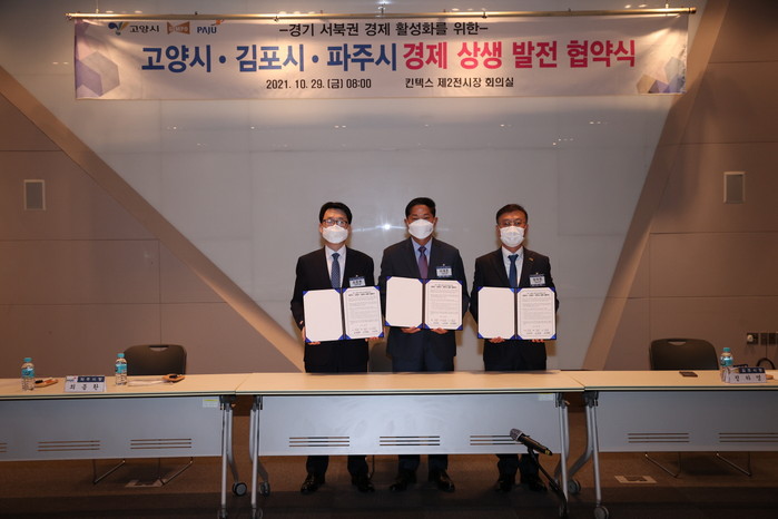 [부자동네타임즈 김인수기자] 고양시는 "29일 경기 서북부 3개 도시인 고양‧김포‧파주시 간에 ‘경기 서북부 경제상생 발전을 위한 업무협약’을 맺었다."고 밝혔다.