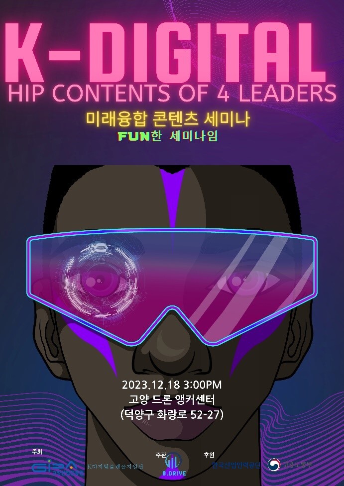 진흥원 K디지털플랫폼지원단이 주최하고, (주)디드라이브가 주관, 산업인력공단과 고용노동부 후원으로 진행되는 이번행사는 고양시만의 ‘디지털 우드스톡’콘셉으로 추진된다.