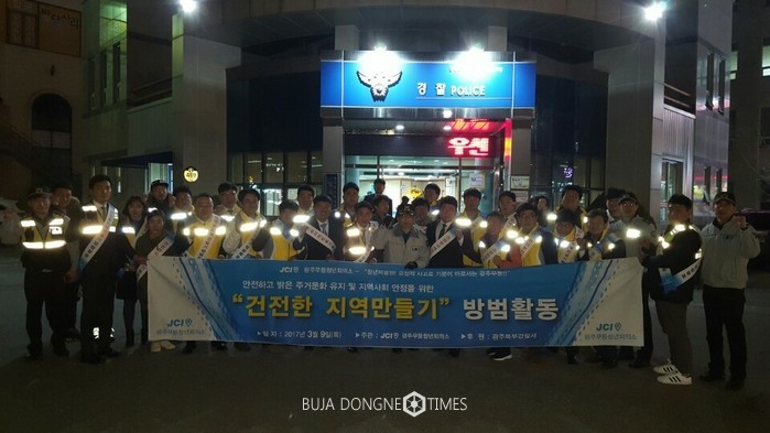 광주북부경찰서(서장 임광문)는 '17. 3. 9. 광주 북구 일곡동, 오치동 일대에서 생활안전과·일곡지구대·광주무등청년회의소 대원 30여 명이 참여하는 청소년 보호와 범죄예방을 위한 '건전한 지역 만들기' 합동활동을 실시하였다.