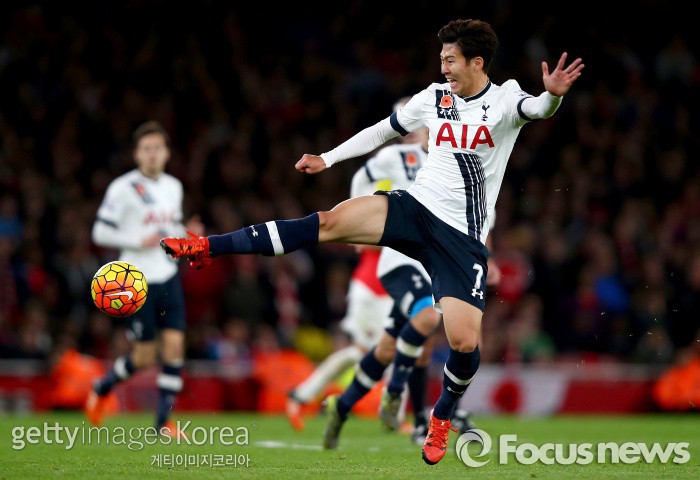 | △ <런던/영국=게티/포커스뉴스> 토트넘 소속 손흥민이 11월9일 새벽(한국시간) 원정으로 열린 아스날과의 프리미어리그 경기에서 슛을 시도하고 있다. (C)게티이미지/멀티비츠 |