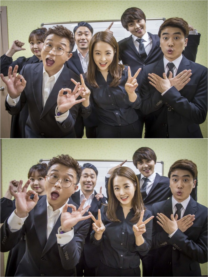 | △ 배우 박보영이 지난 25일 KBS2TV '개그콘서트' 유전자 코너 녹화를 마친 후 출연 했던 개그맨들과 함께 익살스러운 표정으로 기념촬영하고 있다. <사진제공=개그콘서트 공식 페이스북> |