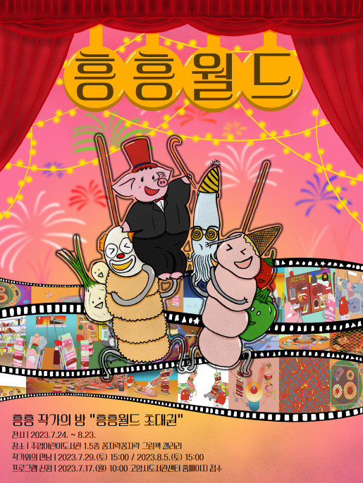 김흥식 작가는 “‘흥흥월드 초대권’은 놀이동산 같은 전시”라며 “아이뿐만 아니라 보호자 가족이 다함께 즐길 수 있는, 창의력을 자극하는 즐거운 전시회가 될 것”이라고 전했다.