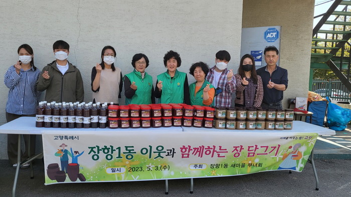 이번 행사에서는 장항1동 새마을부녀회 주관으로 직능단체 회원 등 15명이 참여했다. 혼자서 장을 담그기 어려운 취약가구에게 미리 준비한 재료로 된장, 고추장, 간장을 담가 전달하는 등 이웃을 위한 따뜻한 나눔을 실천했다.