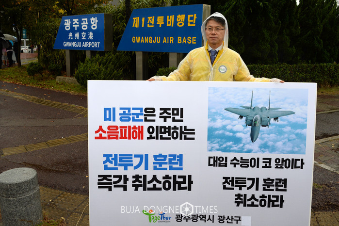 이날 민 구청장을 시작으로 광주 군공항 소음피해 지역인 송정동, 도산동, 어룡동, 동곡동, 신흥동 주민들이 한미연합 비행훈련 취소를 요구하는 1인 시위를 이어갈 계획이다.