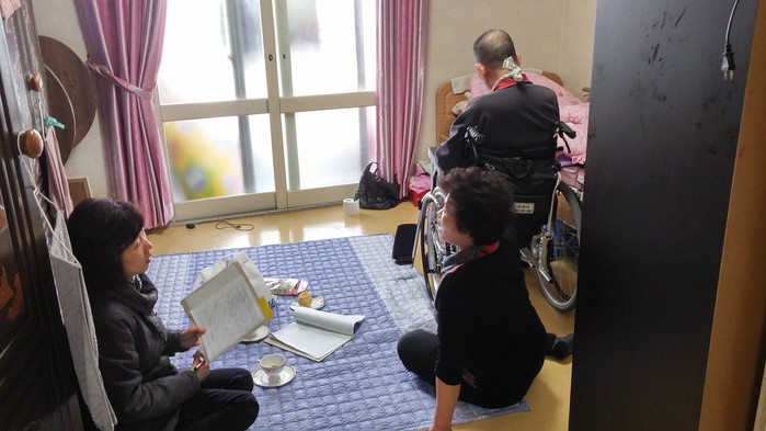 | △ 더함복지사가 위기가정을 방문해 상담하고 있다. |