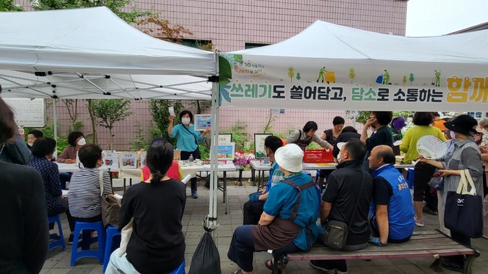 이번 쓰담DAY에서 정발산동의 자원순환 활성화를 위해 올바른 쓰레기 분리배출을 위한 환경교육과 업사이클링공방(바다유리뱃지, 천연수세미 만들기 등), 투명페트병 교환, 재활용봉투 배부 등의 주민참여활동이 진행됐다.