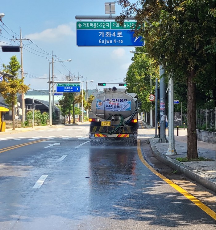 일산서구는 일 최고 체감온도가 33도 이상이 될 때 발효되는 폭염특보에 대처하기 위해 관내 중앙로 등 도심지역 주요도로에 16톤 살수차 2대를 운영하여 아스팔트 도로의 열을 식히고 주변 온도를 낮추어 도심의 열섬현상을 방지할 계획이다.