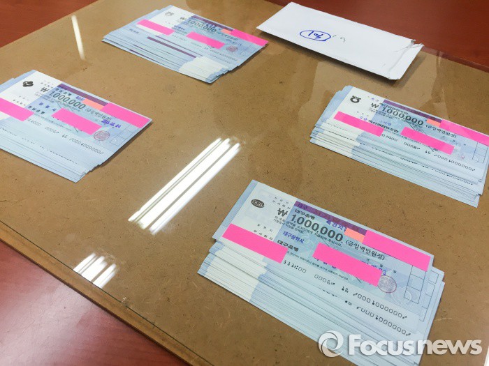 이날 K씨는 경찰에서 수표 출처 경위에 대해 "올해 8월에 대구 토지와 부속된 건물을 매각한 금액"이라며 "6차례에 걸쳐 통장으로 돈을 받은 뒤 잔금조를 수표로 매수자로부터 직접 받은 것"이라고 진술했다.