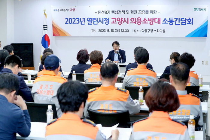 [부자동네타임즈 김인수기자] 지난 18일 오후 덕양구청 소회의실에서 지역 의용소방대원 40여 명과 소통 간담회를 가졌다.