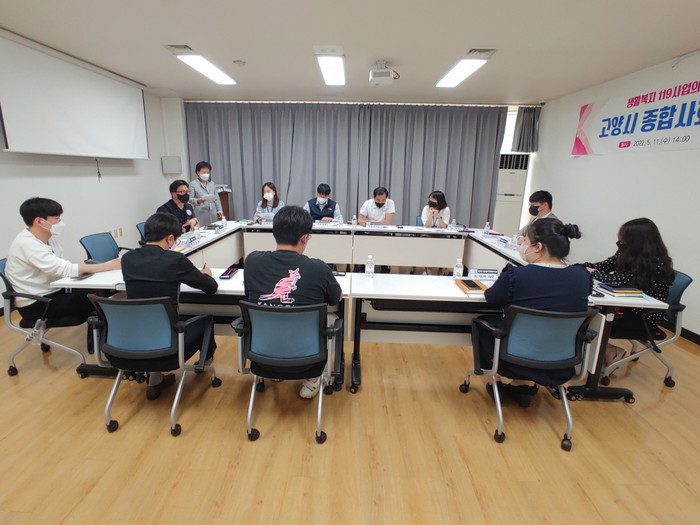 이날 간담회에는 관계부서 공무원 5명, 고양시 종합사회복지관 직원 9명이 참석하여 생활복지119사업‘고양뚝딱’시행에 따른 민.관 협업체계마련 및 대상자 발굴 협조, 생활복지119사업의 효율적 . 효과적인 사업운영 방향을 논의했다.