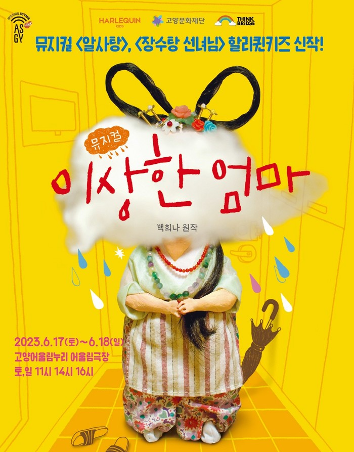 [부자동네타임즈 김인수기자] 고양문화재단은 2023 패밀리 초이스 두 번째 프로그램으로 가족 뮤지컬 <이상한 엄마>를 6월 17일부터 18일까지 고양어울림누리 어울림극장에서 선보인다. 국내 아동문학계 베스트셀러 작가이자 세계적인 작가 반열에 오른 백희나 작가의 동명 작품을 원작으로 하며, 4년 연속 판매 랭킹 1위(2019~2022 인터파크 티켓 아동/가족 부문)를 기록한 <알사탕>, <장수탕 선녀님>에 이어 할리퀸크리에이션즈(주)와 백희나 작가가 선보이는 세 번째 가족 뮤지컬이다.