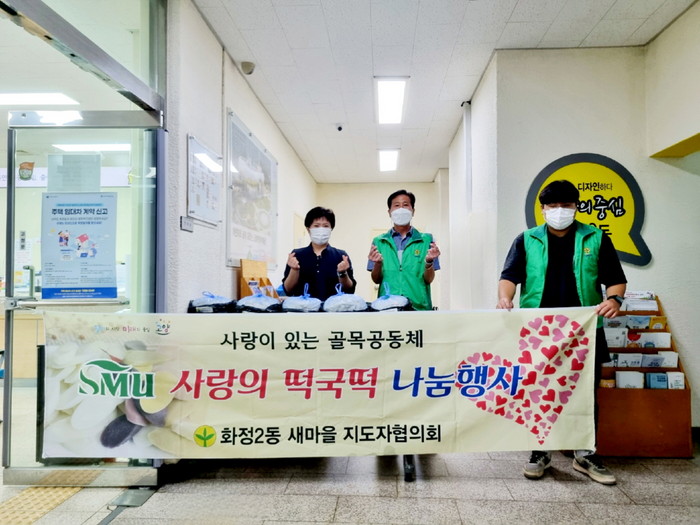 한편 화정2동 새마을지도자협의회는 작년에 이어 어려운 이웃을 위한 떡국떡 나눔 행사를 지속하고 있으며 관내 취약계층을 위해 찾아가는 이동빨래 서비스, 말라리아 퇴치·예방을 위한 방역활동, 나라 사랑을 일깨우기 위한 태극기 나눔 행사 등 다양한 활동을 하고 있다.