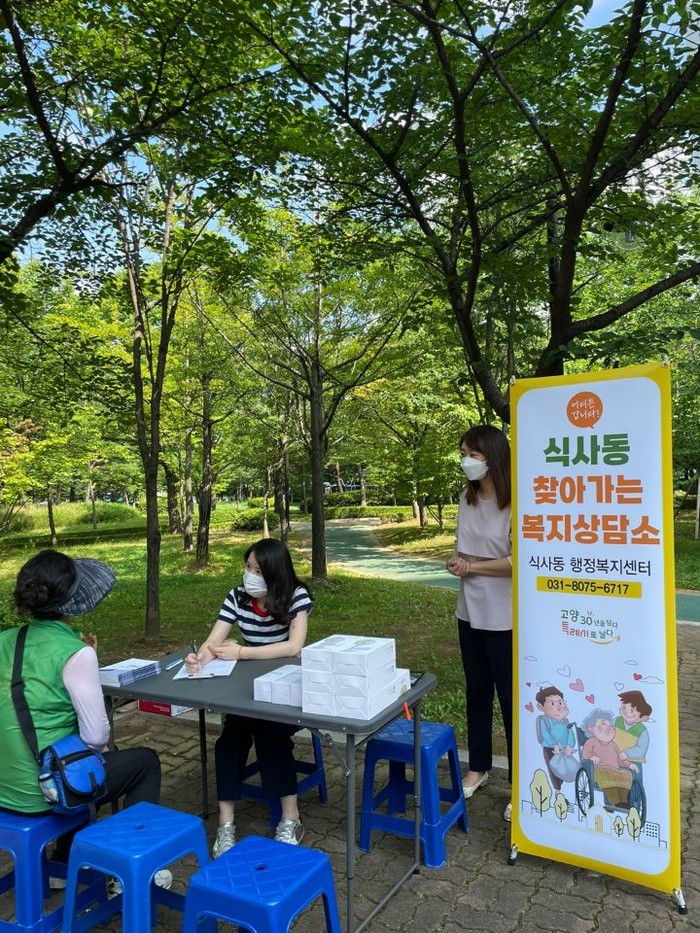 [부자동네타임즈 김인수기자] 고양시 일산동구 식사동은 지난 29일 은행마을공원에서 지역주민들에게 사회복지서비스 홍보 및 안내하고, 복지사각지대 발굴을 위한 찾아가는 복지상담소를 운영했다.
