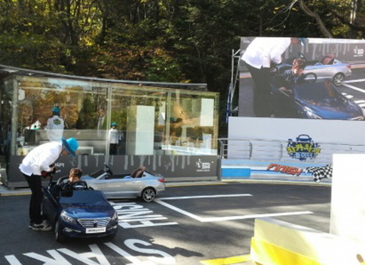 대형 쏘나타 모형 놀이 시설은 미끄럼틀, 모형 엔진룸 등 놀이기구들로 이루어진 거대한 쏘나타 모형 안에 어린이들이 들어가 직접 타고 만지며 즐길 수 있도록 했다.