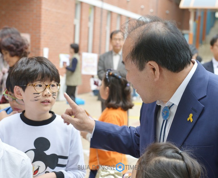 장휘국교육감은 27일 오후 1시 광주동신초등학교 중정원과 운동장에서 열린 '광주동산한마음 마을축제'에 참여해 학생, 학부모, 지역주민들과 만난 후 학교 안전 시설과 교육 현장을 둘러봤다.