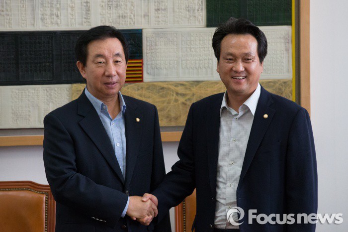 | △ 지난 8월30일 오후 서울 여의도 국회에서 예산결산특별위원회 여야간사인 새누리당 김성태(왼쪽) 의원과 새정치민주연합 안민석 의원이 대화에 앞서 악수하고 있다. <사진제공=포커스뉴스> |