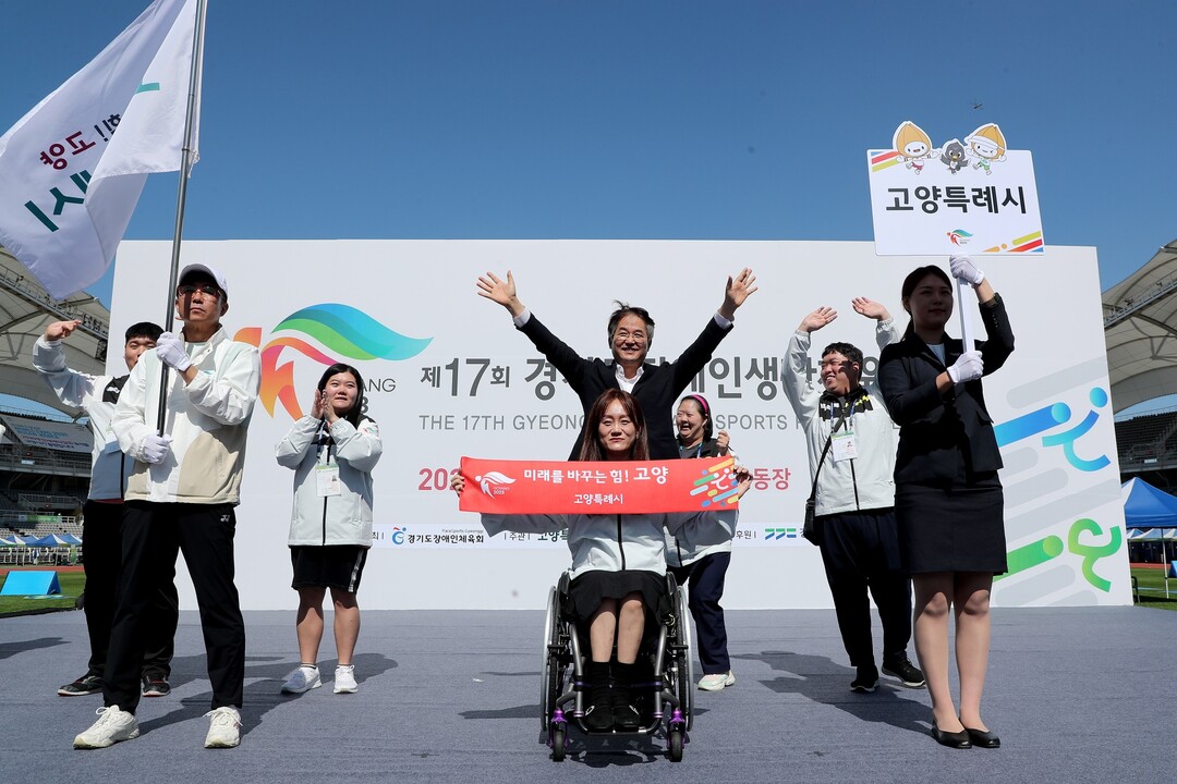 이동환 고양특례시장은 환영사로 “제17회 경기도장애인생활체육대회는 장애인과 비장애인이 서로 화합하고, 차별 없는 스포츠 복지가 실현되는 대회가 될 것이다.”라며, “모두가 하나 되는 오늘, 대회 슬로건처럼 ‘같이 뛰는 심장으로, 함께 뛰는 생활체육’이 되도록 다 같이 한마음으로 함께하자.”라고 전했다.