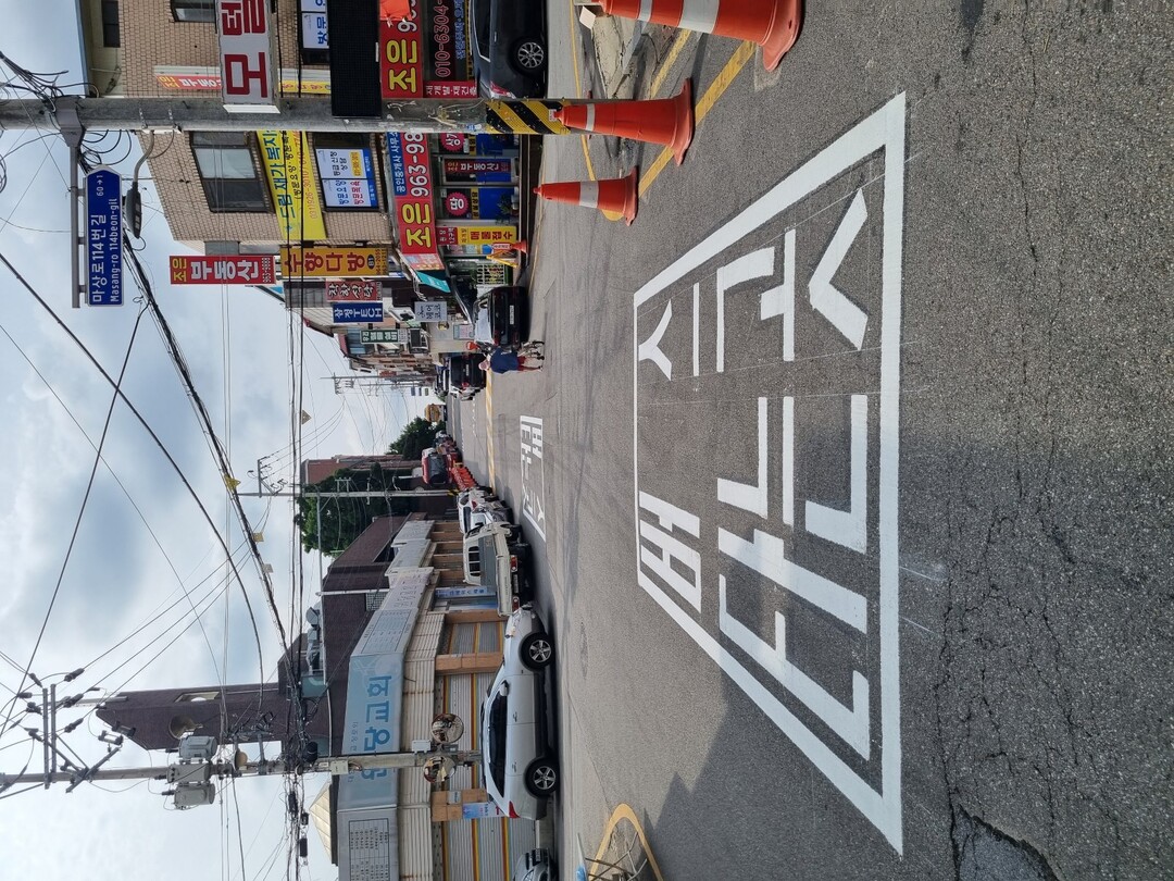 고민 끝에 고양시는 버스 정류소 앞 도로에 ‘버스 타는 곳’이라고 적힌 표시를 했다. 노면 버스 정류소는 통행에 방해되는 물체 없이 주민과 운전자에게 버스 정류소의 위치를 알림으로써 효과적으로 교통 불편을 해소했다.