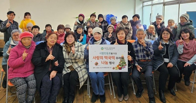 이번 나눔 행사는 2023년 연말을 맞아 IWPG 파주지부 회원들이 따스한 사랑의 온정을 담아 떡국떡, 사골국, 만두, 과일 등 떡국 꾸러미를 마련했다.