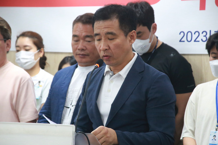 [사진설명] 고양특례시체육회 임원 입장문 발표하고 있다.