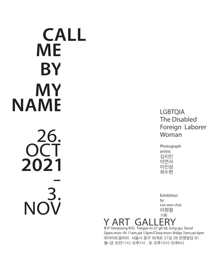 [부자동네타임즈 김인수기자] 와이아트 갤러리(중구 퇴계로)에서 일반화 대상이 아닌 각 개인의 삶을 존중하고 바라보자는 취지에서의 'Call me by my name' 사진 전시회가 열린다.