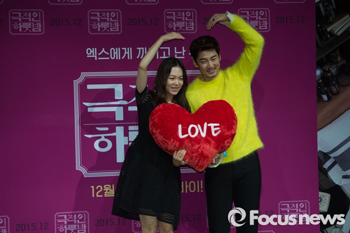 (서울=포커스뉴스) 27일 오전 서울 강남구 압구정로 압구정CGV에서 열린 영화 '극적인 하룻밤' 제작보고회에 참석한 배우 한예리(왼쪽)와 윤계상.
