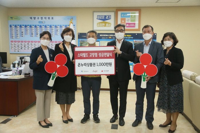 [부자동네타임즈 김인수기자] 스타필드 고양(점장 강필서)은 고양시 덕양구 창릉동(동장 이병영) 저소득 취약계층 돌봄 사업 추진을 위한 후원금 일천만 원을 지난 3일 덕양구청(구청장 김운영)에 전달하는 행사를 가졌다.